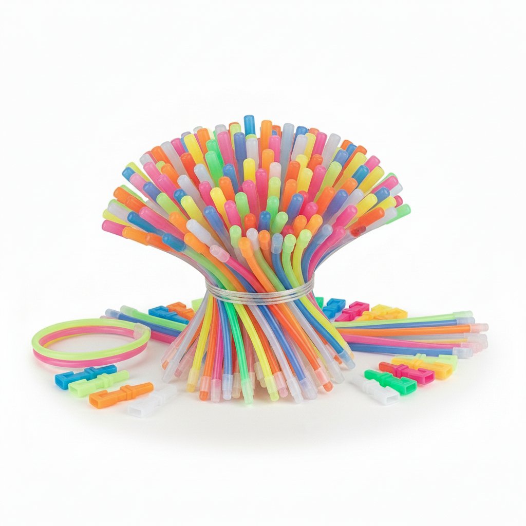 100 x 8-inch Premium Glow Sticks (Assorted Colors), 100 x Bracelet/Necklace Connectors.